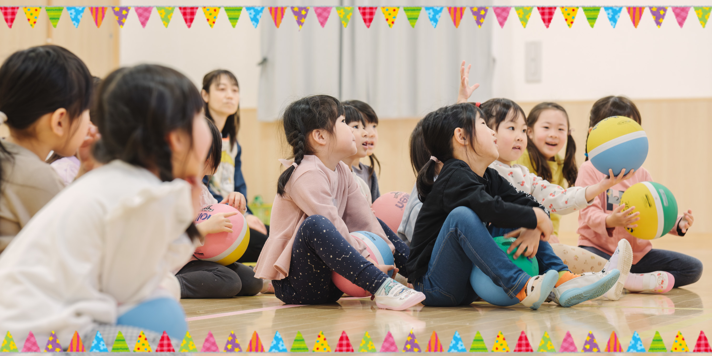 子どもたちが、お友だちへの思いやりを持ち、自分で考えて行動できるように、また、豊かな創造力を持ち、心身ともに健やかに成長できるように保育をしていきたいと思います。子どもたちの笑顔の絶えない保育園を職員一同目指しています。