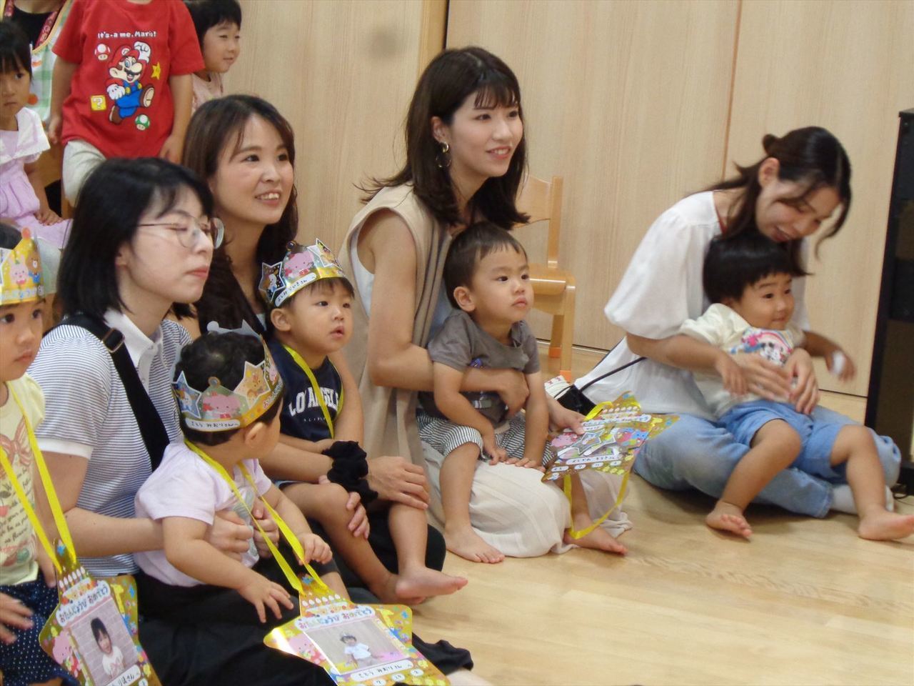 ひよこ組さんもママと安心してお誕生会に参加し、1歳のお祝いを楽しみました。
